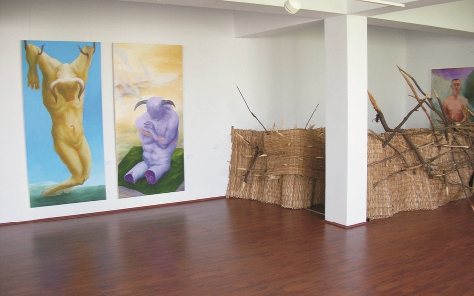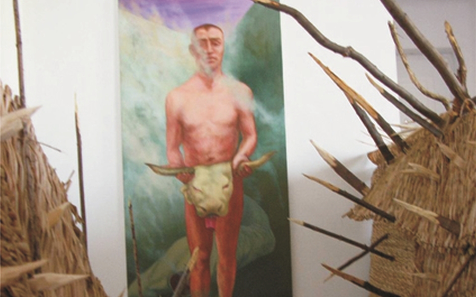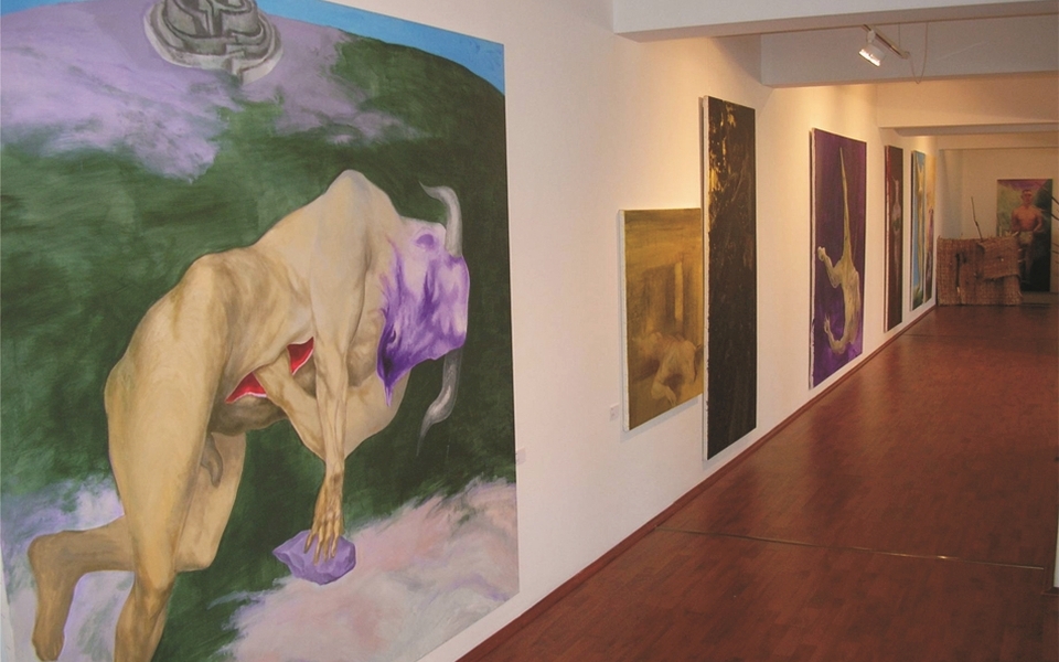For two years, this precious example of creativity passes literally through the Labyrinth probe which is the knowledge way with fatal obstacles, danger of getting lost and mangle, rout of crossroads and of recurrent way, collision with the monster mix. Assuming the poetic air of his own Sun Sign, Taurus, strongly marked by a journey to Crete, Rădvan has slipped lonely in the Labyrinth through the lived in Corridor with Europe born physically from the erotic of Song of Songs. These stops in the thematic fields and the subtle passages among them, set in such an order like shells of power (hero, warrior, pontifex), then telluric feminine sexuality, get in conflict now in tanathyc, sacrificed body, impure, destructive throb. Sacrifice of Taurus represents to Jungians School the will of spiritual lifting, defeat of lower impulse, an initiation that sets the universe equilibrium. Testing evil, assuming it, by understanding damnation that artist can emphatically practise; bring unbelievable enrichments to the effigy of Minotaurus. Borges had already talked about the innocence in evil in monstrous of Queen of Crete son created by the obsessive union of a Taurus from the sea, who was hidden in the Labyrinth and turned into a devouring through social concord. Rădvan creates a hypostasis of a self punitive Minotaurus, sympathetic, a rebel of destiny, an athlete, a Kuros touched by anatomical contaminations of Taurus. Torture of own body, forgiving through acceptation of condition, self mutilation as a release of curse, devouring as a metaphysic victim, are the turnovers of Labyrinth through which figurative interrogation of Rădvan has passed.