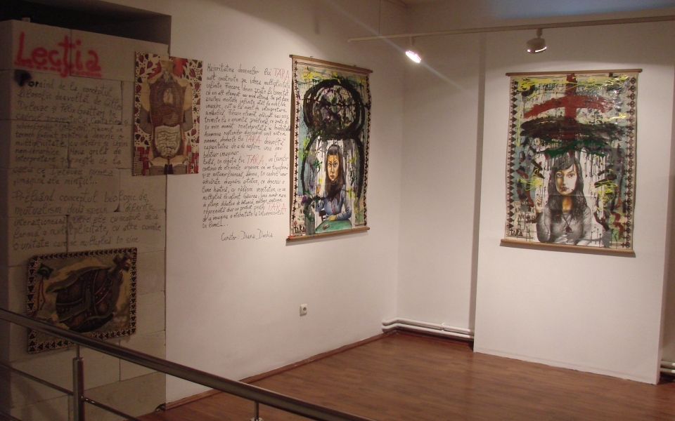 Starting from the philosophic concept developed by Gilles Deleuze and Félix Guattari within the project the Capitalism and Schizophrenia (1972-1980), the rhizome becomes a term used to describe a multiplicity with nonhierarchical entrances and exits. New grid of interpretation stems from what Deleuze named “image of thought”, the rhizome being a concept which opposites the concept of arborescent knowledge which works with dual categories and binary choices. The rhizome work with horizontal connections and trans- species, while the arborescent model work with vertical and linear connections. Taking over the biological concept of mutualism, two different species interact in order to form a multiplicity; in other words, a unity which multiplies itself. The majority of Tara’s drawings built on the idea of infinite multiplicity. Each of his drawings can be connected with another element or anything else. It is possible to make infinite mental analogies both at the image level and at symbolic interpretation level. Each element added or dropped leads to a certain problem which, at any moment can be reinterpreted and contextualized. Similar to the disruption within the rhizomic system, Tara’s drawings develop the capacity to create a wild beast image. The rhizomic system developed by Deleuze and Guattari conception mark a horizontal and nonhierarchical, where anything can be linked to something else, since we are dealing with heterogeneous relations between things, which at first sight have nothing in common. There is in Tara’s creation one another permanent transfer of organic elements that change and often metamorphose within a true artistic creativity that depict a chaotic world, with vegetative roots that multiplies infinitely. Finding maps in the project Finis Mundi or a great number of didactic botanic, zoological or anatomical sketches represent only pretext for Tara to imagine an eternity of darkness in the world. The black deep hatch of the drawings translates the opposition between total affection for the tackled subjects and the monstrosity described. The irrepressible spirit, solitary, prying, unquiet, using violation without interdictions Tara feels in peace only in Engelthal (The Angels Valley) – the only idyllic imagine in the exhibition. The experience of visually reading the artistic words of Tara oscillates between direct, unrefined reading, and fantasy, dreaming, imagining psychologies and different habits.