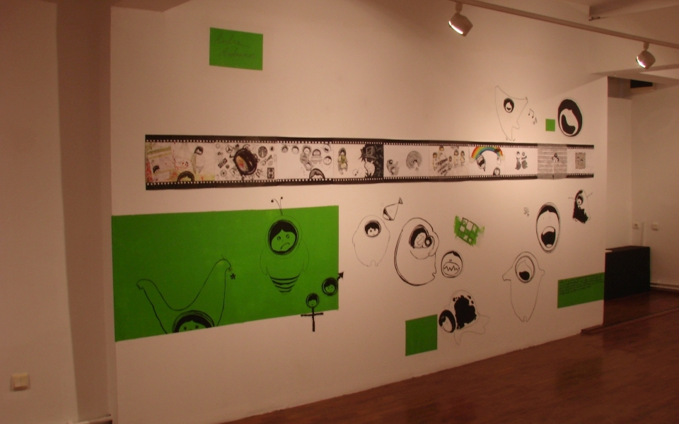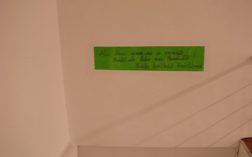 Into a world where stories are gone and the books were forgotten on the shelves, four artists from Romania and Austria imagine and draw their own stories. Andra Andronic (RO), Harem6 (Flavia Marele & Ildikó Mureşan) (EN), Padma Bhatt (AU) and Doroteya Petrova (AU), mixing different techniques and images from the graphics and the object area intertwined with sound, text and animation for children.