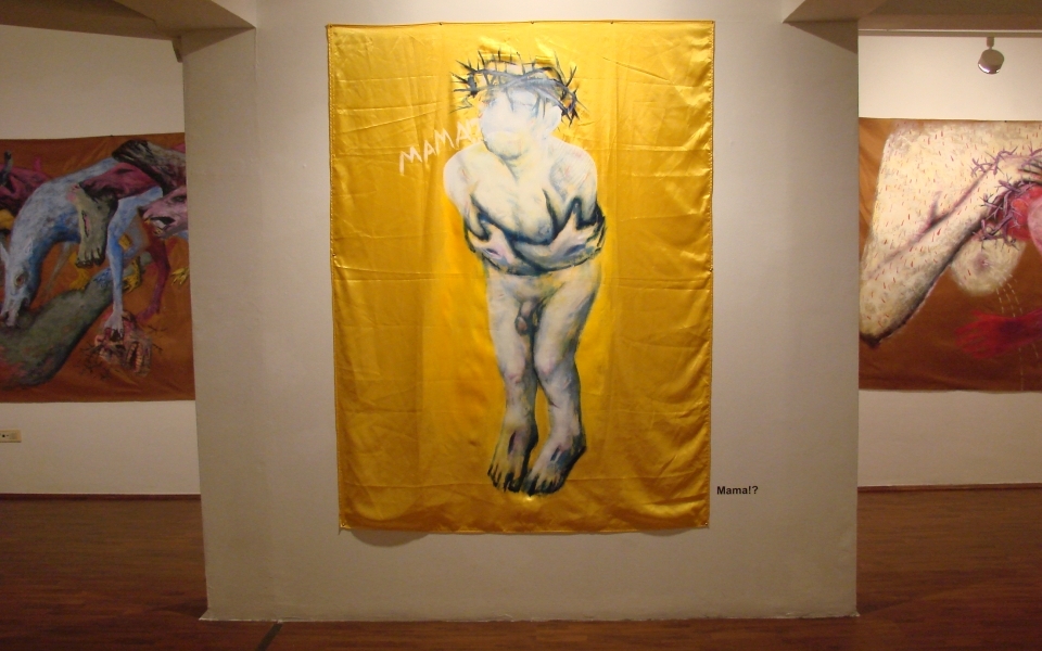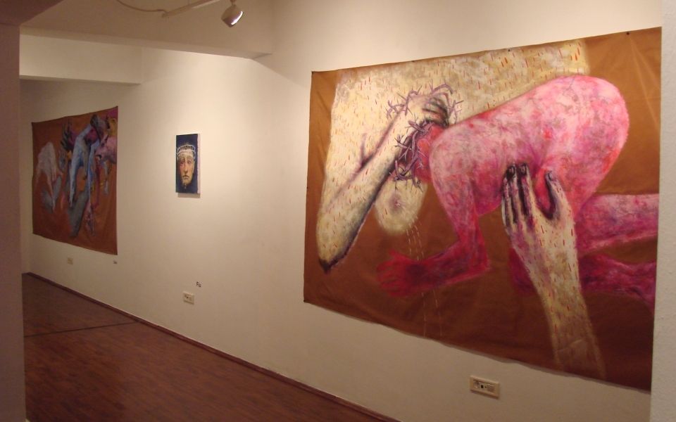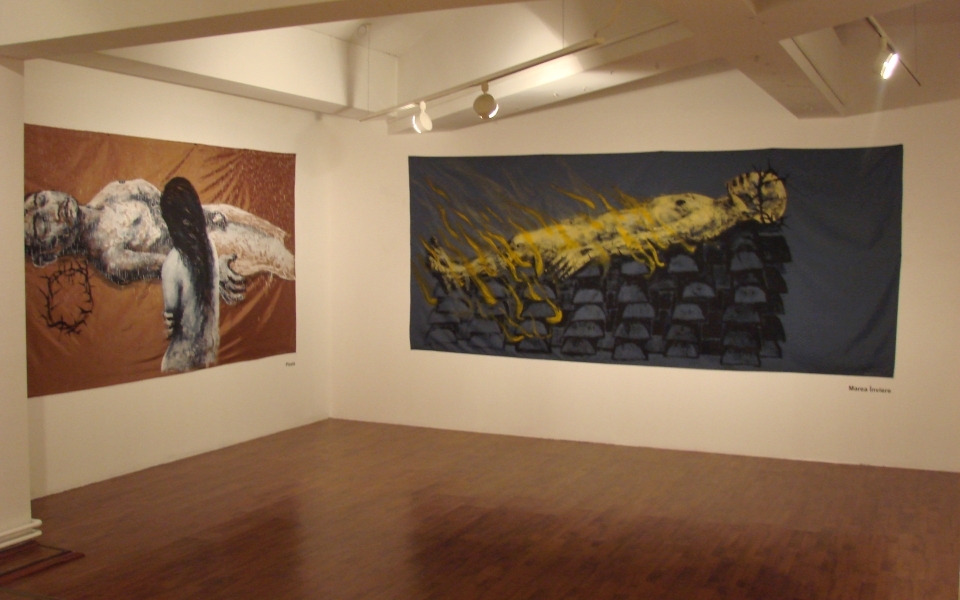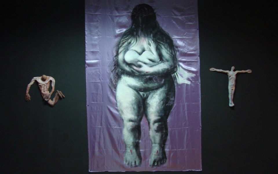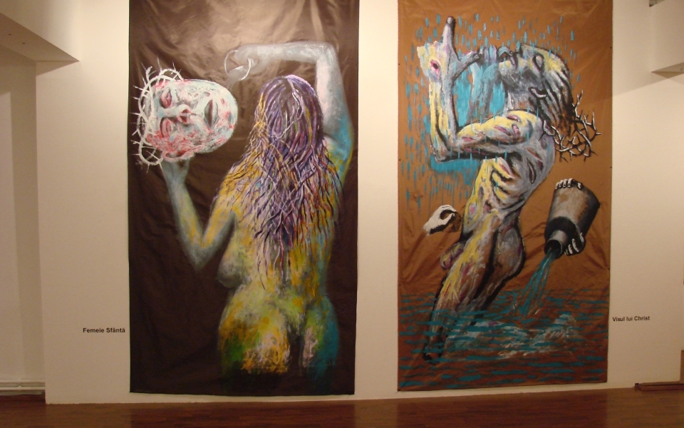 Theodor Adorna in Minima Moralia considered that “Every piece of art is a non committed felony”1, and Alain de Botton in his work The Consolation of Philosophy stated: “What is considering being abnormal within a group at a time may not be appreciated this way forever. We can trespass borders in our mind.”2. This border trespassing is defined by Michel Foucault as transgression. The transgression exceeds and doesn’t stop to exceed a limit once again. This game with a limit appears extremely well outlined within Alexandru’s Rădvan artistic evolution. Rădvan doesn’t interpose a thing, doesn’t make a thing fall into the game of derision and doesn’t try to shake the reliability of fundaments. There is nothing negative in Rădvan’s work or in the concept of transgression. Alexandru Rădvan brings into discussion Christianity and the way in which the contemporary society relates to the Christian values. It’s about a serious approach in which the interrogation of the human dimension goes down into the deepest searching of the inner self. It is a heartbreaking vision of a disordered world in which the myth lost its rights.