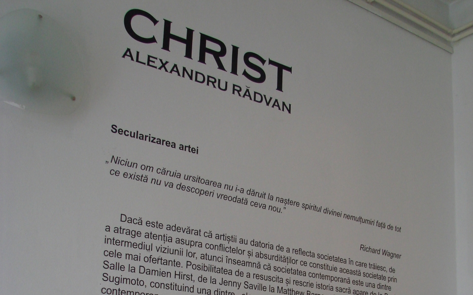Human beings consider certain human beings, places, times and things as being sacred. Through contemporary art the understanding of When?, Where?, Why? is tried and How? these considerations appeared. Alexandru Rădvan asks himself, he tackles a problem; he questions the human dimension of the divine. Christ-The human is been given to us by Alexandru Rădvan in all his humanity. Rădvan doesn’t contest Christ’s existence or his divine dimension, but he approaches the actual context in which Christ, the Son of God is perceived and understood by the human beings of the 21st century.