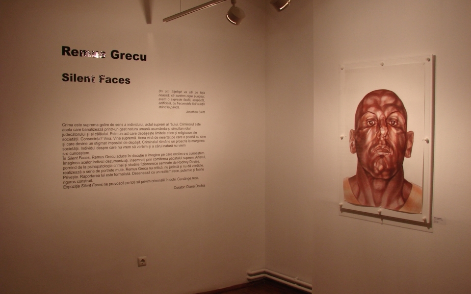 In Silent Faces, Remus Grecu brings into focus those very images we strive to avoid: those dehumanized individuals, stigmatized because they have committed the greatest sin. The artist – by taking the crime psychopathology and physiognomic studies signed by Rodney Davies – realizes a series of mute portraits.