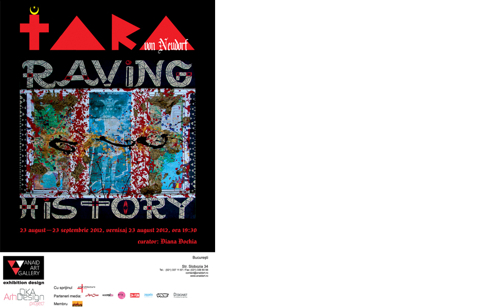 “Raving History” sketches what we were taught to believe and know about us, in the “glorious” period of that time through drawings and maps of communist propaganda. Tara (von Neudorf) offers the contemporary public the image of a ravaged world where values have been transformed, reinterpreted, cropped or over-increased to serve certain political ideals. Tara (von Neudorf) does not present an idyllic or nostalgic history, he does not make judgment values and he does not try to distance from the subject. Tara (von Neudorf) does not refer to communism to be “cool”, does not use communist props – pioneer tie, the “şoimii patriei”suit, sickle and hammer – as simply decorative elements of an era, which marked and shook the Romanian history. Tara (von Neudorf) shows the history after the criteria and the way in which a whole generation was forced to learn it.