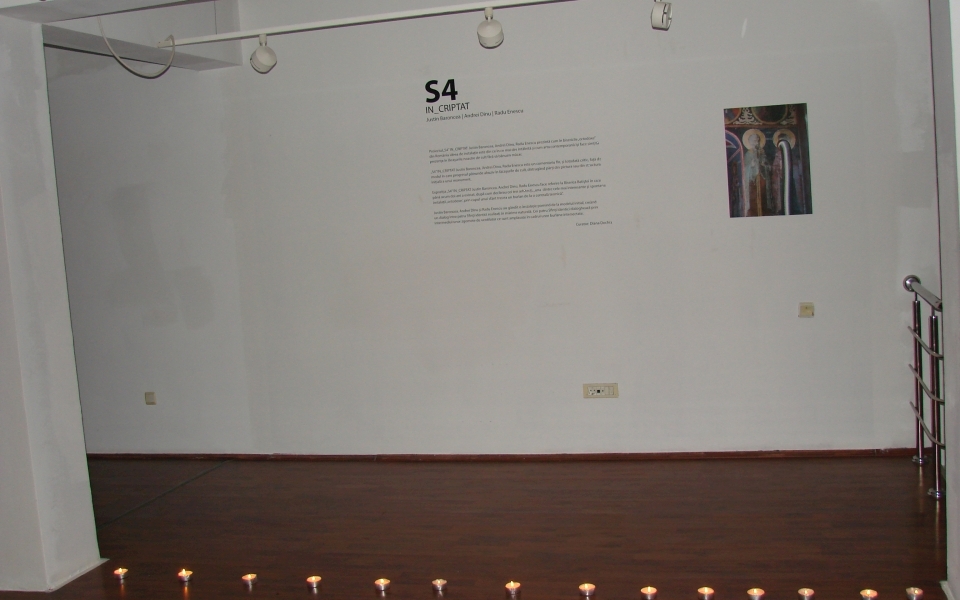 The exhibition “S4″ IN_CRIPTAT Justin Baroncea, Andrei Dinu, Radu Enescu refers to Batistei church where, until two years ago, as the three architects declared: “one of the most interesting and spontaneous orthodox installation, through the head of a saint was passing a pipe from a boiler” existed.
