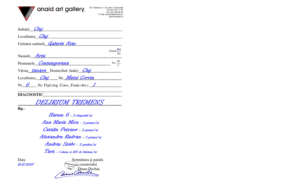 Opening: 18.10.2007 at 07:30 pm at Atas Gallery in Cluj-Napoca