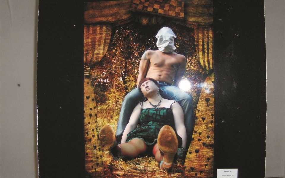 As if from another movie, two feminine characters take photographs of an allegorical wedding. András Szabó suggests antagonistic images by placing side by side his grandmother’s dining room, full of objects, imaginary beings, which seem to cross through thousand of light years in time. A doll. Everything becomes weird; we are entering in a bizarre world with Harem6, full of disguise, full of dreams invaded by insects and modern Centauries, full of symbols long forgotten. Two parallel worlds in which the dream mixes with reality.