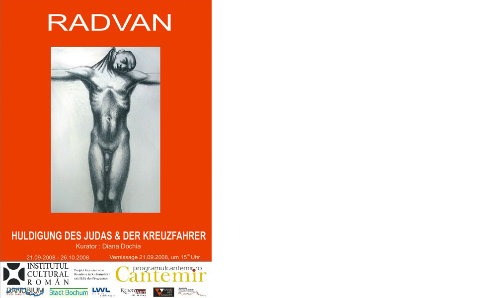 The series “Homage to Judas and the Crusaders” signed by Alexandru Radvan illustrates “the last temptation” apostle Judas, the traitor. He hangs himself tormented between betrayal and the guilt of his action. The achievement of the betrayal, the psychological pressure the moment in which the temptation becomes a fact and the constant question in the background, if not Judas is the one that fulfills the Divine will, are some of Alexandru Radvan’s questions. All is in plain sight, compassion and abjection, complicated and simple, profound and straight, pushing the tragedy to the endurable limit.